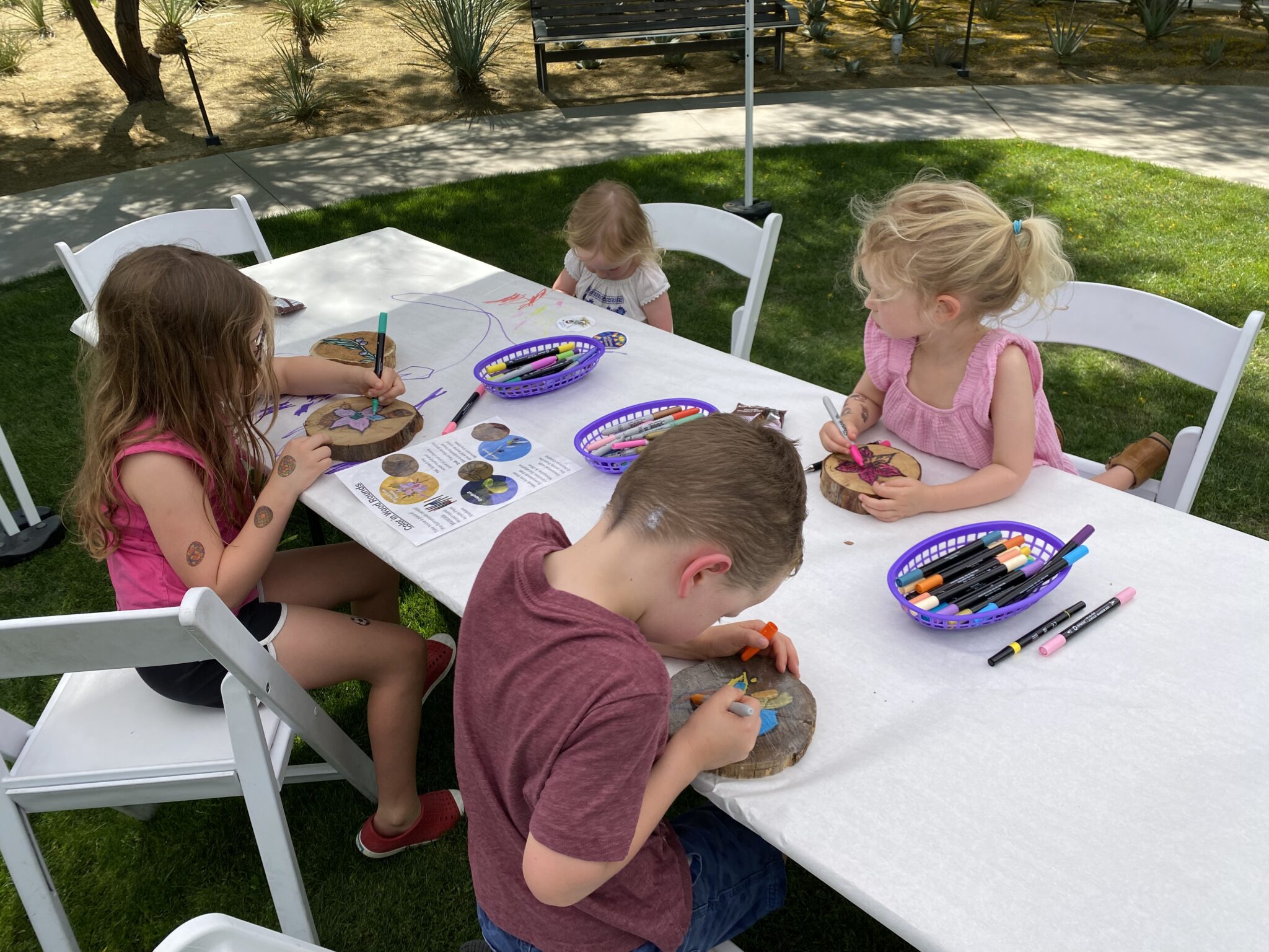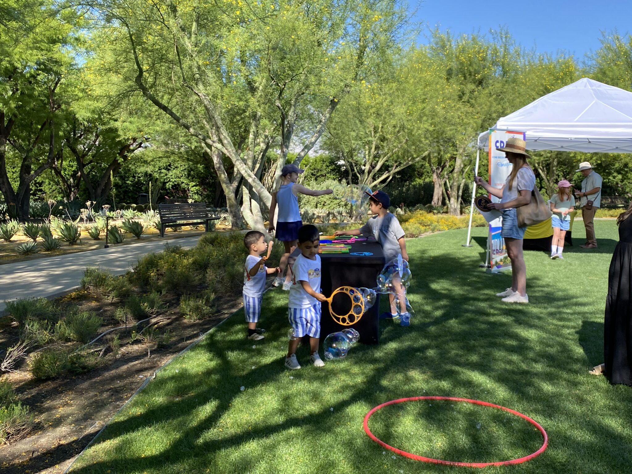 Along with bird walks, games, and arts and crafts, the families were invited to interact with other Coachella Valley cultural institutions, such as the La Quinta Museum and Cabot’s Pueblo Museum, that set up display tables in the gardens. “It’s a great way to have an introduction to these families,” said Cindy Burreson, CEO of the Children’s Discovery Museum of the Desert. The museum offers military families an admissions discount of 10 percent.