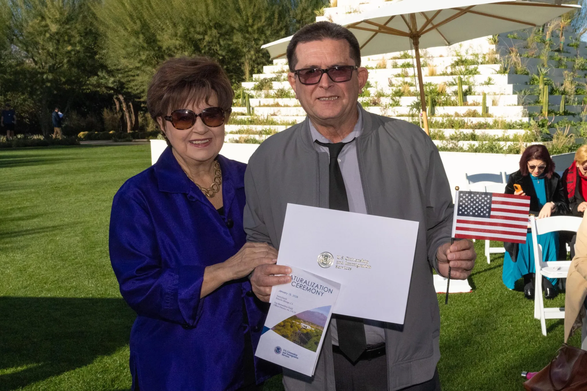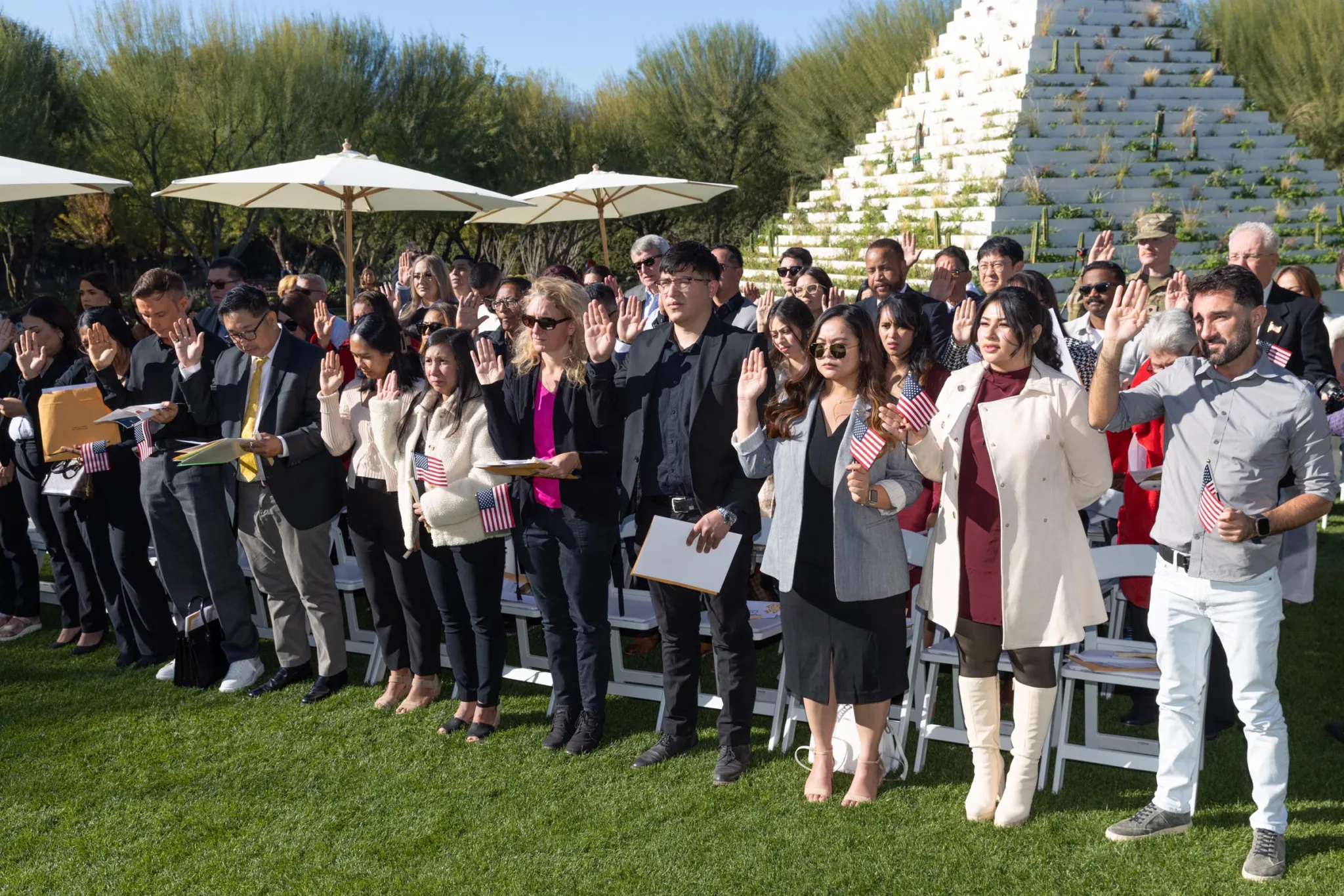 “Sunnylands is a place that embodies the spirit of diplomacy, service, and civic engagement,” he said, addressing the new citizens and their friends and families. “I urge each of our new citizens to actively participate in the democratic process. You will have the right to vote, to make your voice heard, and to advocate for the issues that matter most to you.”