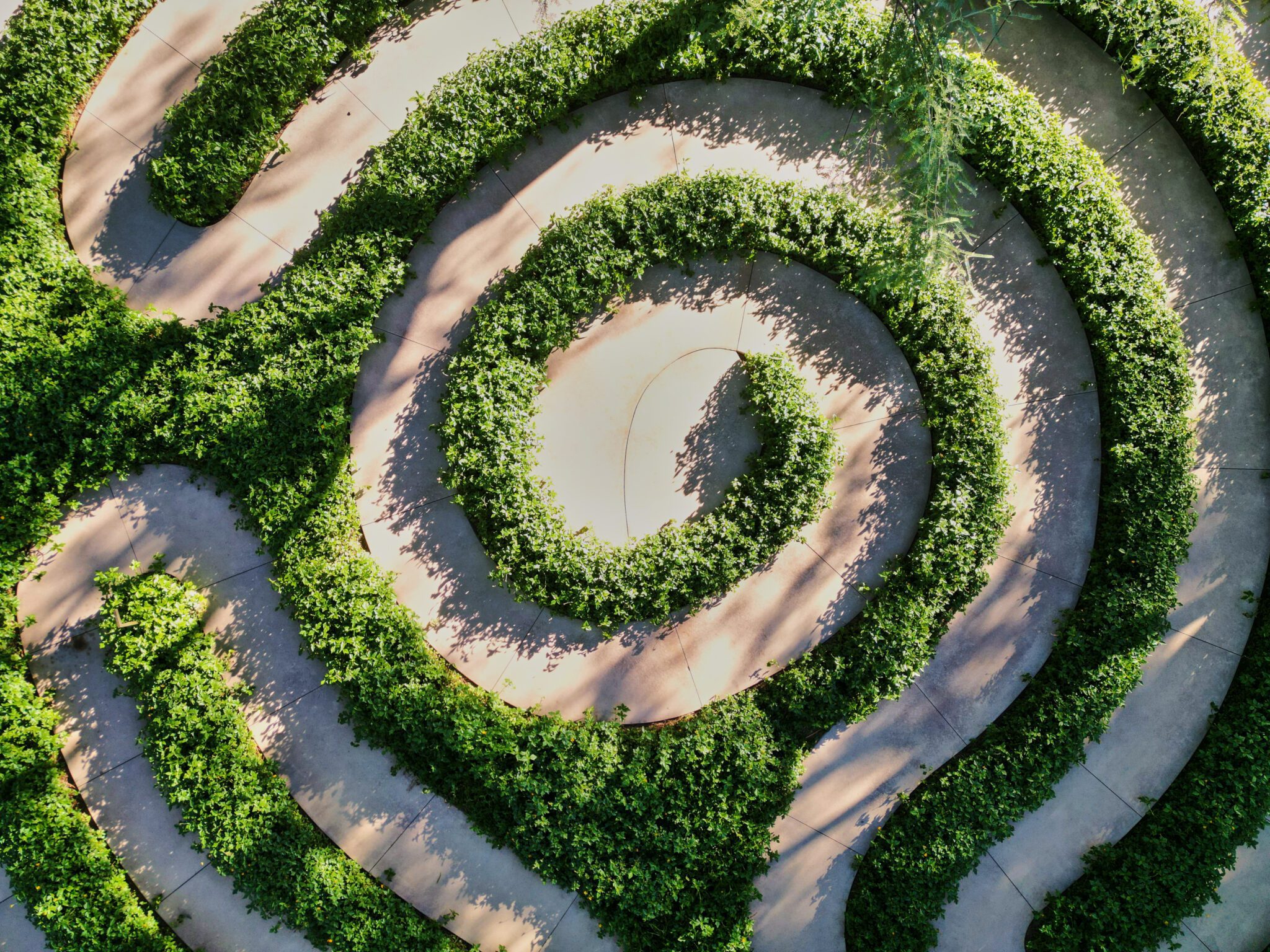 While they both offer a sense of intrigue, a maze is designed to create confusion whereas a labyrinth offers the chance for contemplation. Rather than featuring wayward paths and dead-ends, labyrinths are unicursal, meaning they have a single path that weaves to the center and subsequently meanders back to the entrance. Many people find labyrinths to be a meditative experience.