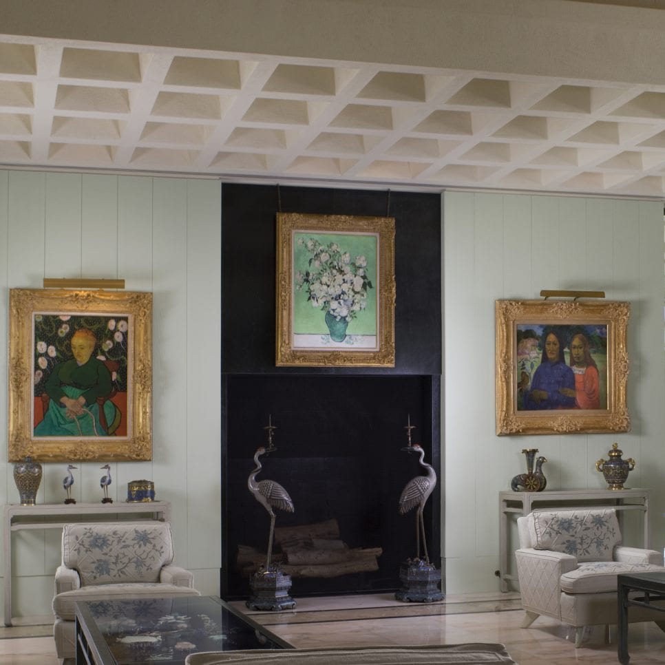 Following the transfer of the collection in 2002, Leonore Annenberg worked closely with the museum staff to create vibrant, full-scale digital reproductions of the paintings and recreated carved duplicates of the original ornate frames for installation at Sunnylands. These reproductions were installed at Sunnylands to forever communicate how significant a role the paintings played in the lives of the donors and the impact they had on the design of the house.